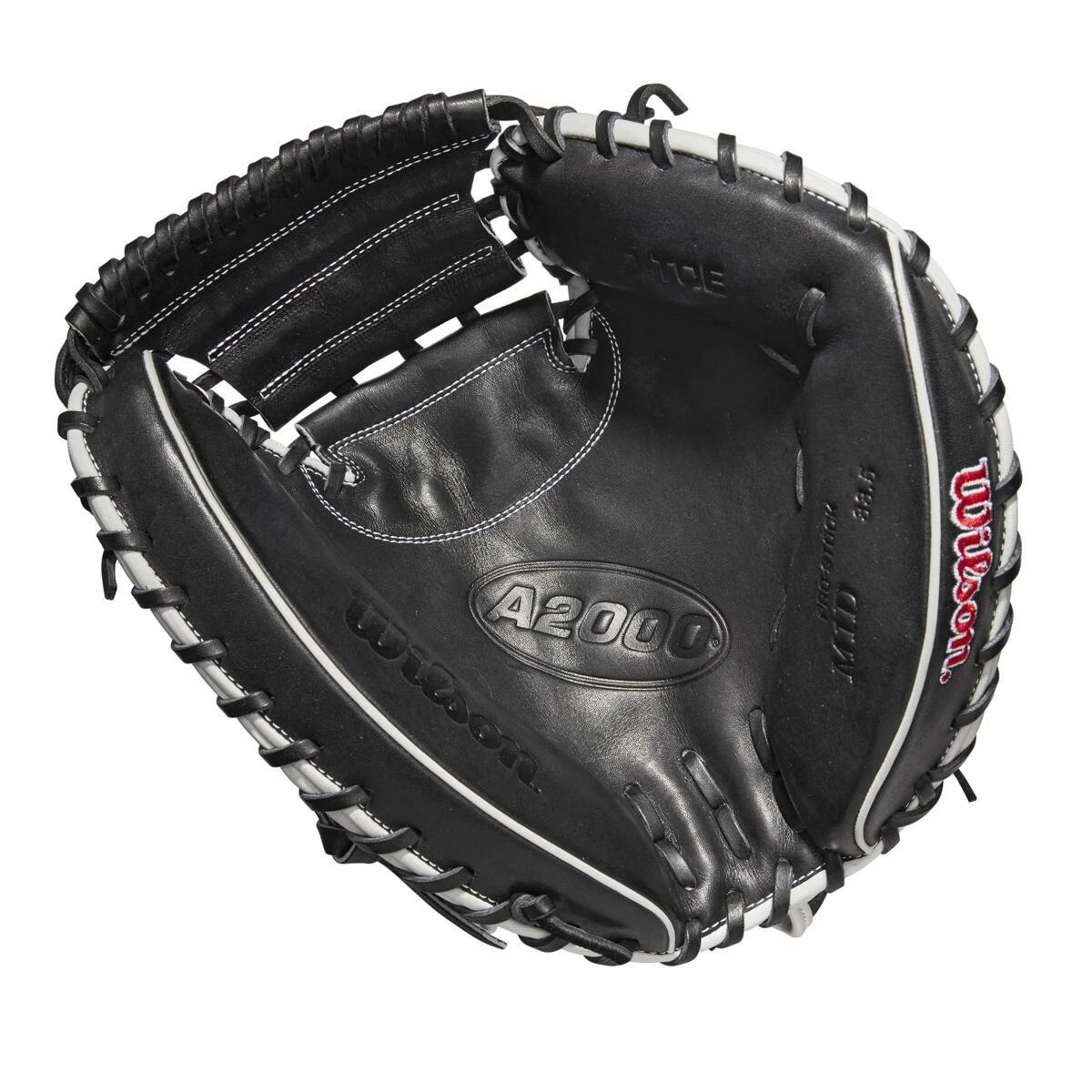 Frame every pitch on the black and get that called third strike for your pitcher with the 2022 A2000® M1DSS. The Black Pro Stock® leather palm and Half-Moon Web features a deep pocket preferred by elite backstops. A Black SuperSkin™ back on this 33.5” model improves durability and moisture resistance while reducing glove weight so you can set up the perfect target behind the dish.