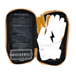 BRUCE BOLT is the newest name in baseball. Their White Premium Pro Long Cuff batting gloves are some of the highest quality, best fitting, most durable gloves in the game. They’re made from the ultra premium 0.9mm Cabretta leather and feature a proprietary Double Inverse Cuff System which creates a more powerful swing and unmatched wrist support at the point of contact. Each pair of BRUCE+BOLT gloves are handmade by highly skilled craftsmen. It’s unlike any other glove out there.