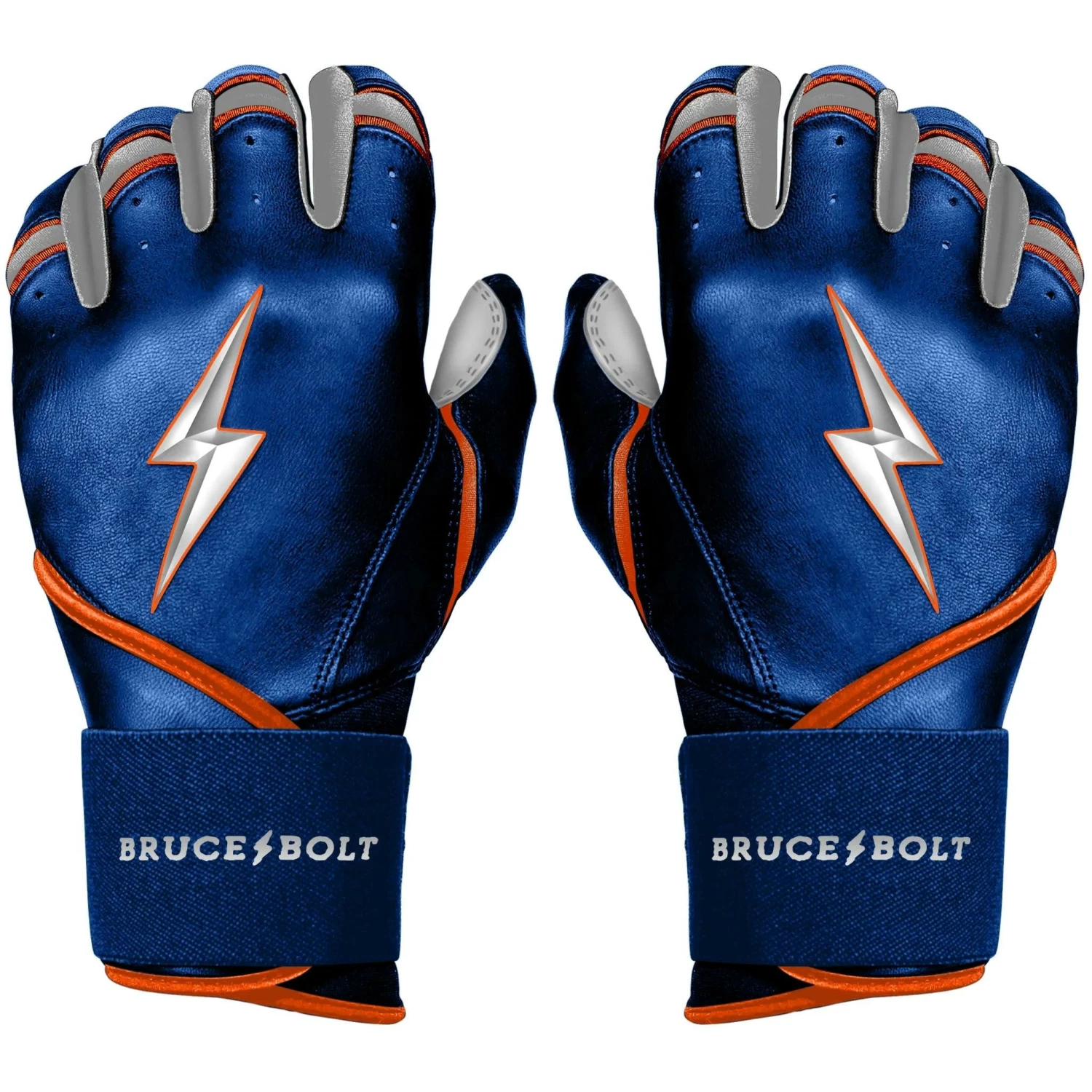 Each pair of Bruce Bolt Premium Pro Long Cuff Brandon Nimmo Signature Batting Gloves are handmade by skilled craftsmen using only the highest quality 0.9mm Cabretta leather and stitching techniques which makes Bruce Bolt gloves buttery soft but more durable than any other glove on the market.