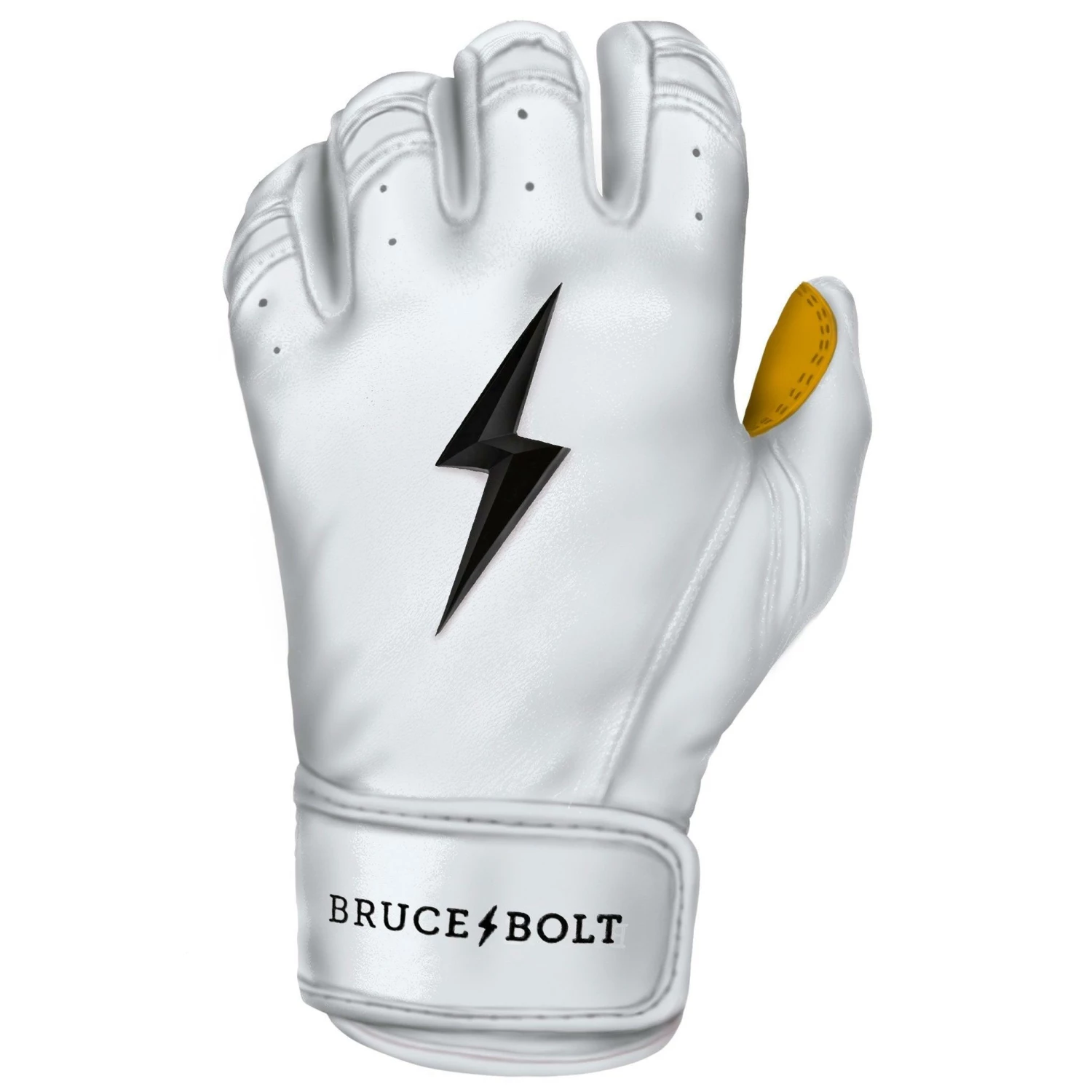 Each pair of BRUCE BOLT White batting gloves are handmade by skilled craftsmen using only the highest quality 0.9mm Cabretta leather and stitching techniques which makes Bruce Bolt gloves buttery soft but more durable than any other glove on the market.