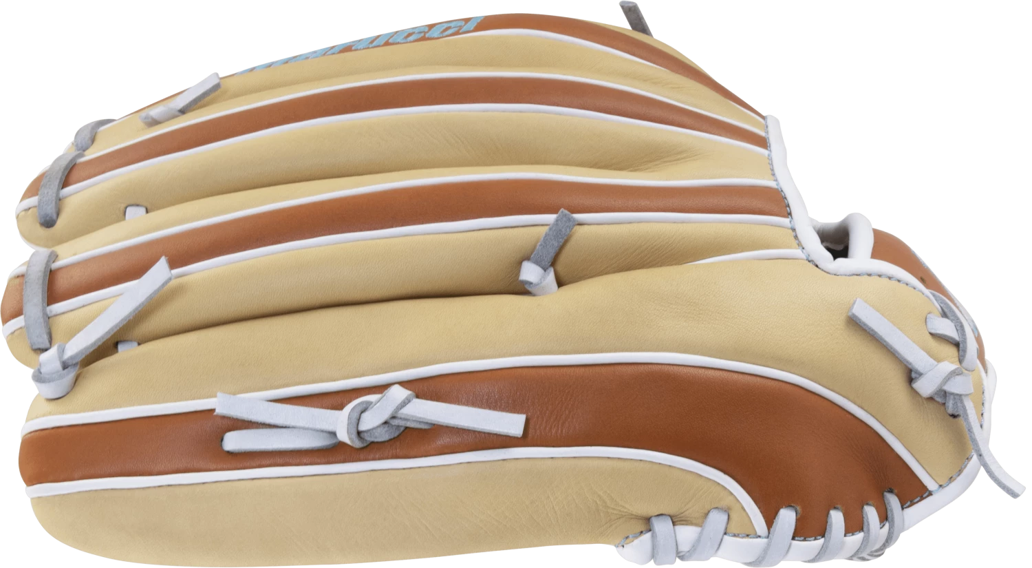 The new and improved Marucci Acadia M Type Fastpitch Softball Glove fit system provides integrated thumb and pinky sleeves with enhanced thumb stall cushioning to maximize comfort and feel.