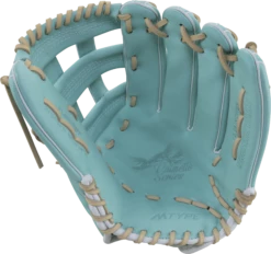 M Type fit system provides integrated thumb and pinky sleeves with enhanced thumb stall cushioning to maximize comfort and feel. The Marucci Palmetto 12.75″ fastpitch softball glove offers a deep pocket and tapered hand stall which provides a better fit and fielding control. This outfield softball glove is built for the female outfielder looking for a beautiful mint blue colorway.