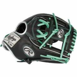 In addition, all Pro Preferred gloves feature Pittards sheepskin palm lining, which provides optimal comfort and wicks away moisture. As a result, your hands stay dry in any playing conditions. For additional comfort, its wool wrist strap promotes lasting comfort to the back of your hand, and our internal wool padding allows you to form the perfect pocket. You’ll get maximum comfort and control every time you put on this classic black glove. It even comes with the perfect splash of color thanks to it’s mint lacing and silver Rawlings patch and ‘Oval-R.’
