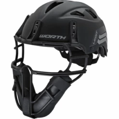 This slow-pitch softball catcher’s mask is molded for enhanced style and impact resistance. This pitcher’s mask has a ventilation system that allows air flow through the helmet for comfort and its adjustable dial gives you a superior fit.Â