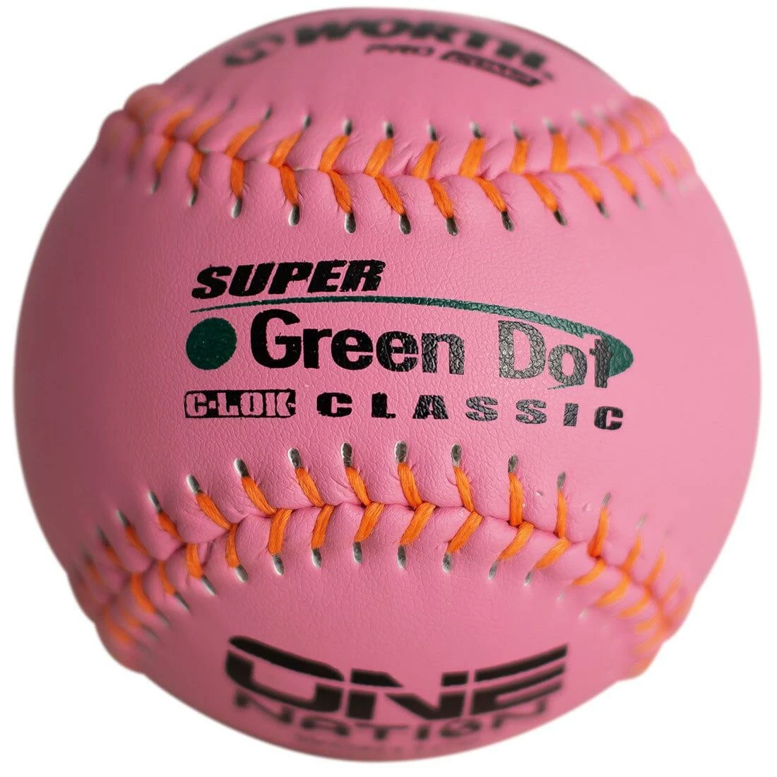 This One Nation 11 in Pink Cover softball features our innovative ball technology with a new pink cover. These new pink balls are perfect for any team playing in a league or tournament for any sort of breast cancer awareness event. They feature the same quality performance as all of our Pro Comp composite leather balls, with a cool pink look. Think Pink with Worth, get yours today!